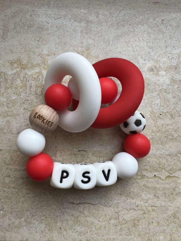 Is jouw kleintje nu al een PSV fan? Dan mag deze bijtring natuurlijk niet ontbreken!