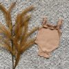 Deze bodysuit is verkrijgbaar in twee kleuren en in verschillende maten; Blush en Camel, maat XS voor kindjes van ongeveer 0-3 maanden, maat S voor kindjes van ongeveer 3-6 maanden, maat M voor kindjes van ongeveer 6-12 maanden, maat L voor kindjes van ongeveer 12-18 maanden en maat XL voor kindjes van ongeveer 18-24 maanden.