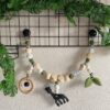 Deze wagenspanner is gemaakt van volledig veilige en gecertificeerde materialen, zoals: satijnkoord, siliconen kralen, houten kralen en acryl haken of houten clips.
